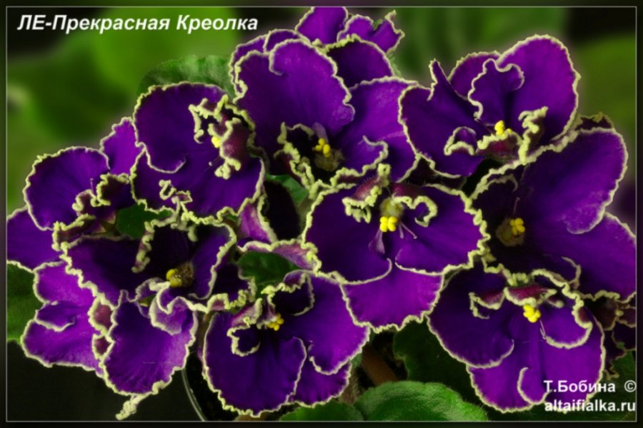 Меня зовут Тамара Бобина, я живу в г. Барнауле Алтайского края. Рада приветствовать вас на страничках сайта "Фиалки на Алтае", где вы можете познакомиться с моей коллекцией узамбарских фиалок, в которой сейчас более 500 сортов этих чудесных цветов. В своих статьях я делюсь с вами секретами по уходу и выращиванию выставочных растений. Буду благодарна, если ваше мнение о сайте и пожелания вы оставите в разделе "Гостевая книга". А если возникнут вопросы, задать их можно в разделе "Обратная связь". Приглашаю вас полюбоваться фотографиями моих растений,а также купить фиалки, которые вам понравились.