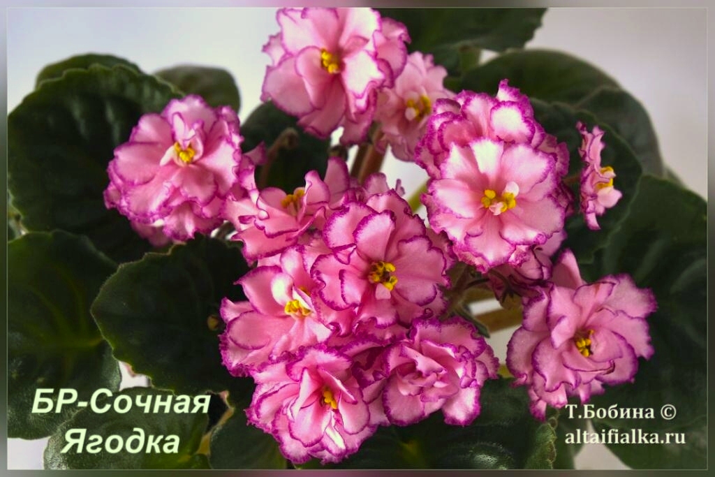 ВаТ-Она Красотка Валькова Крупные пушисто-махровые бело-розовые цветы с гофрированным краем, усыпаны обильным тёмно-сиреневым фэнтези! Компактная розеточка из тёмно-зелёных гёл листьев! См. на Яндекс |