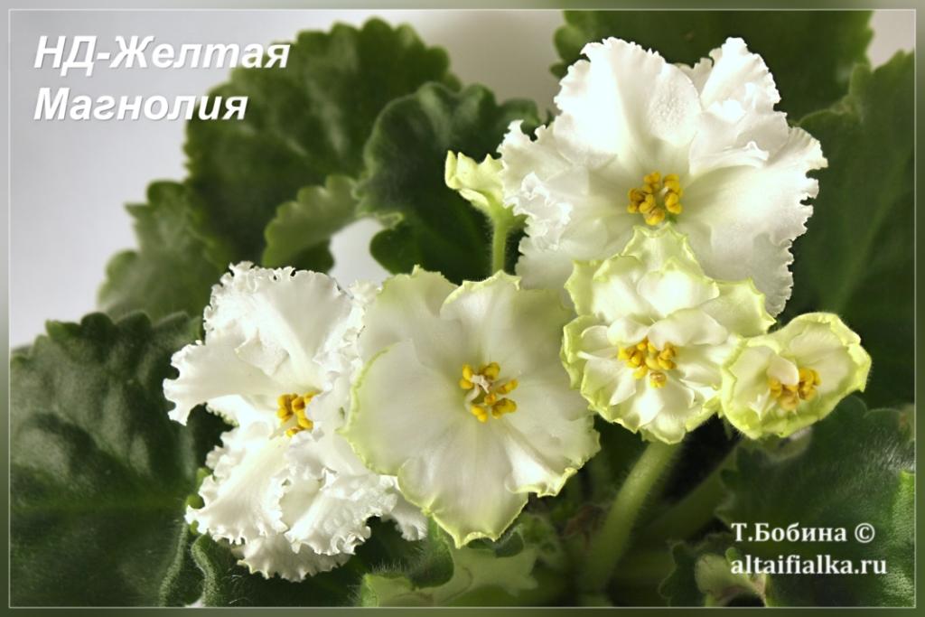 Цветы белые махровые с насыщенным жёлтым пигментом из центра, продолжительное цветение, листья светлозеленные, но допускается темный пигмент. Новинка 2023г. См. в фотоальбоме |